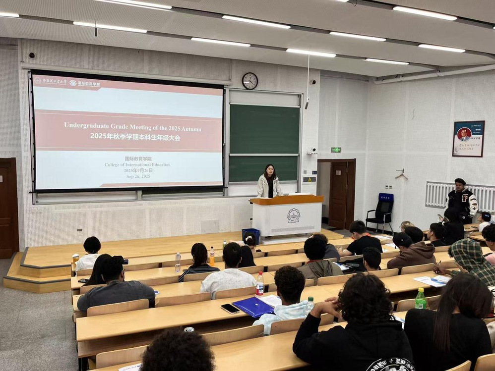 (崔月柔/文)9月26日下午,威廉体育williamhill2025级本科生秋季学期年级大会在正心13召开,会议由辅导员王雪媛和兼职辅导员裴晨曦主持,经管、航天、数学、物理、电气以及商学院的大一国际学生、学生事务助理参加。On the afternoon of September 26th, the Fall Semester Grade Conference for the 2025 undergraduate students of College of International Education was held at Zhengxin 13. The conference was chaired by coordinators Wang Xueyuan and Pei Chenxi, and attended by student affairs assistants and international students from the School of Management, School of Astronautics, School of Mathematics, School o