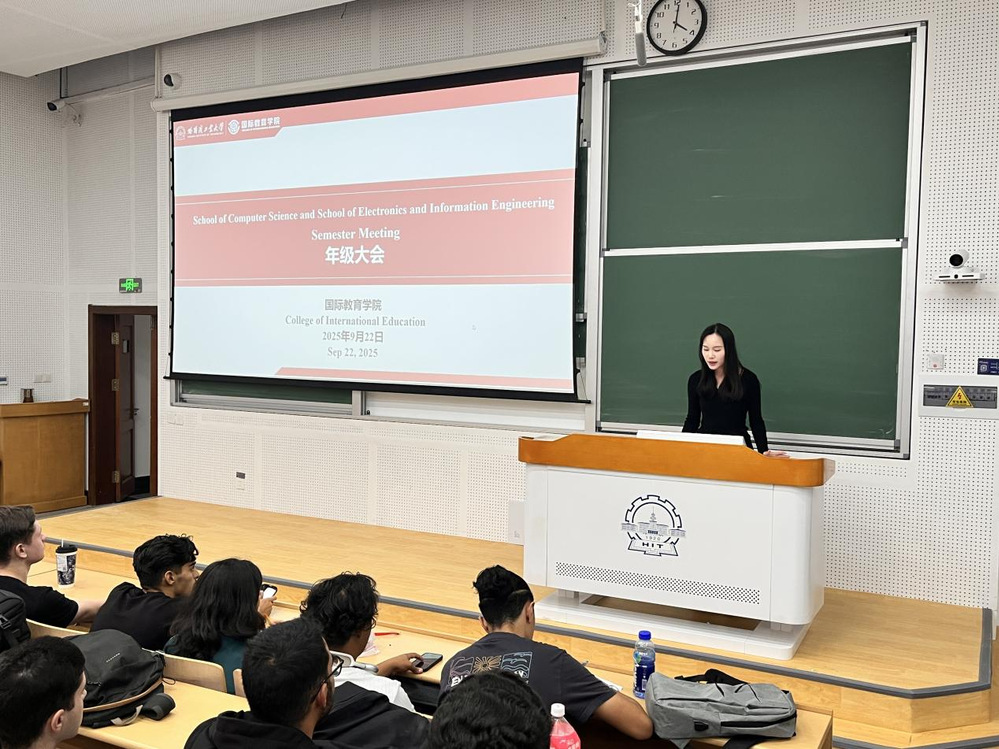 (黄梓伊/文)9月 18 日,为帮助 2025 级秋季学期全体汉语进修生深入了解校园文化、中国相关法律法规与校风校纪,顺利适应在华学习生活,威廉体育williamhill举行汉语进修生第一次年级大会。辅导员王春泰担任年级大会主讲人,副院长赵文、辅导员温晴一同出席,并为同学们现场答疑解惑。On September 18, to help all Chinese language students in the 2025 autumn semester gain a deeper understanding of campus culture, China-related laws and regulations, as well as school ethos and discipline, and to facilitate their smooth adaptation to academic life in China, the College of International Education (CIE) held the first freshman conference for Chines