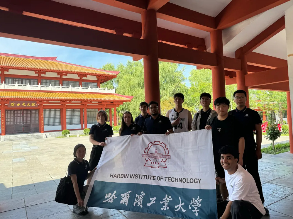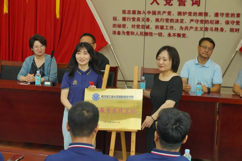 To further advance the practical teaching of the “Great Ideological and Political Course” and expand new paths for ideological and political education, on July 12, 2025, the joint social practice team from Harbin Institute of Technology (HIT) and Hebei University of Technology (HEBUT) held the unveiling ceremony of the “National Conditions Education Practice Base” of HIT College of International Education in Nanbeili Village, Xushui District, Baoding City, Hebei Province. This marks the official establishment of the national conditions education co-construction platform centered on Nanbeili Village.