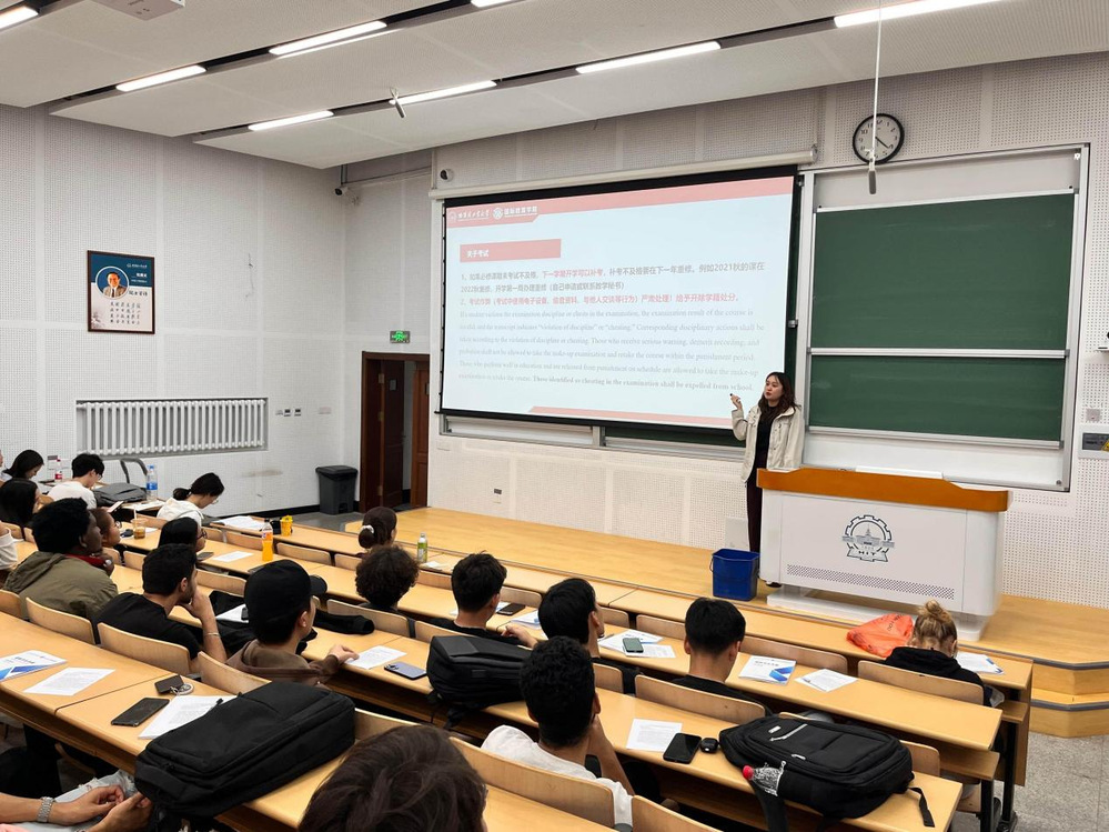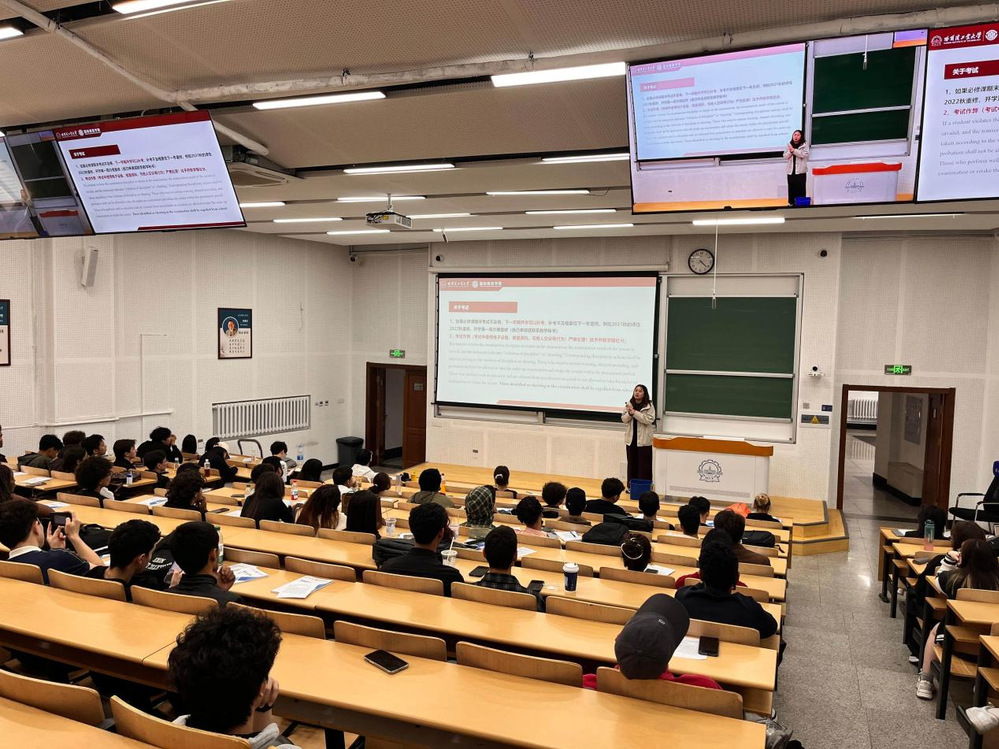 Wang Xueyuan provided detailed explanations on daily affairs such as leave regulations, laws and regulations and campus safety. At the same time, she encourages everyone to actively integrate into the campus, become ambassadors of cultural exchange in cross-cultural interaction and comprehensively enhance their personal abilities.