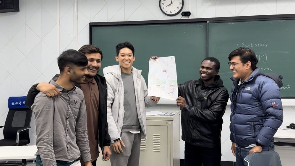活动伊始,辅导员卢静静向国际学生们致以热烈欢迎,强调团队协作与跨文化交流在学术研究和生活中的重要意义,鼓励大家在活动中积极展现文化特色、真诚交流。随后,在老师们的带领下,研究生新生们参与了丰富多彩的破冰游戏,让同学们迅速打破文化壁垒,真诚轻松地融入到跨文化交流和互动之中。通过“绘梦同心”、“心声彩绘”等环节,同学们抒发心声,共话梦想,在画纸上绘制属于自己的梦想的符号,最终拼成一幅多元共生的艺术作品。现场不时响起笑声与欢呼声,迅速拉近了不同国籍学生之间的距离,有效缓解了学业压力,也让大家在交流中找到成长目标。